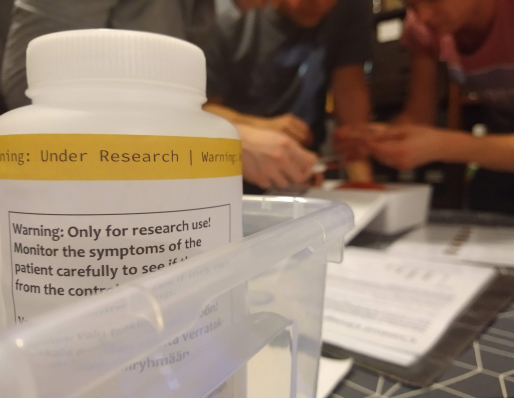 The Cryptic Cargo escape room app functions as a dashboard for anything and everything needed for a great escape game experience. It provides the players with a changing soundscape, a timer and interactive clues and tasks. With the app, the players get hints whenever they feel like they need them as well as instructions on how to play, and how to build the game up again if needed. With the app, it is possible to even change the settings of the game and choose to play the way you want!
